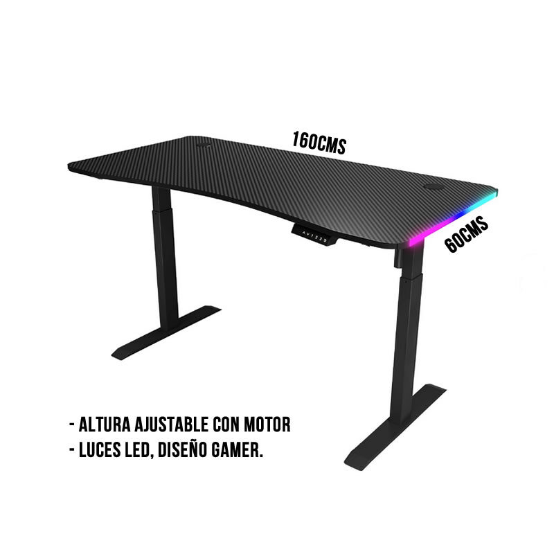 Este escritorio cuenta con un motor que permite que su altura sea ajustable para trabajar sentado o de pie. Este escritorio versátil es adecuado para su uso tanto en entornos domésticos como en oficinas, ofreciendo una amplia superficie para monitores y periféricos de computadora.